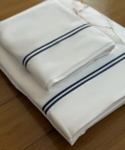Sábanas de Percal 250 hilos con Doble Festón Azul Marino (30 cm de alto)