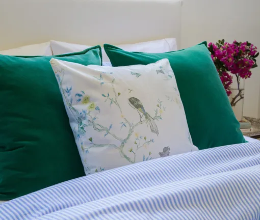 Almohadón de gabardina de algodón con estampa Primavera.