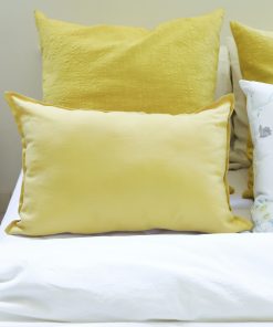 Almohadón de lino belga mostaza 40×60 (incluye relleno).