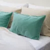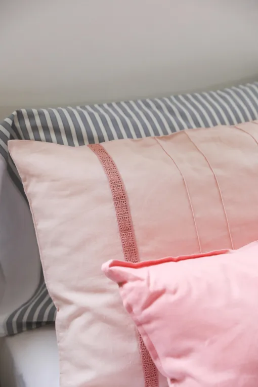 Almohadón de lino rosa chicle, con puntilla a tono.