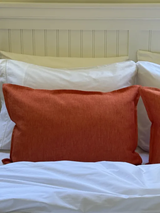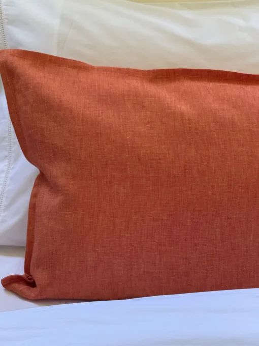 Almohadón de lino tornasolado naranja.
