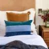 Almohadón centro de lino con sus laterales de terciopelo, tapa de atras mitad terciopelo y mitad lino.
