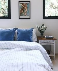 Almohadón de terciopelo con tussor color azul.