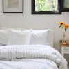 Set de funda de edredón de poplín de algodón doble faz, estampado celeste y blanco. Tapa de atrás de poplín rayas celeste y blanco.