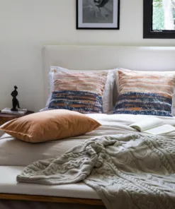 Viene con una funda de almohada de poplín rayado con embozo blanco en la versión de una plaza y dos fundas de almohadas en las versiones matrimoniales.