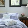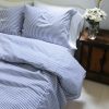 Set de funda de edredón de poplín de algodón, rayado fino azul y blanco. Tapa de atrás de percal 180 hilos mezcla algodón poliéster blanco.