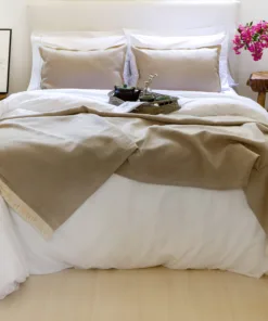 Viene con una funda de almohada de poplín rayado con embozo blanco en la versión de una plaza y dos fundas de almohadas en las versiones matrimoniales.