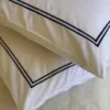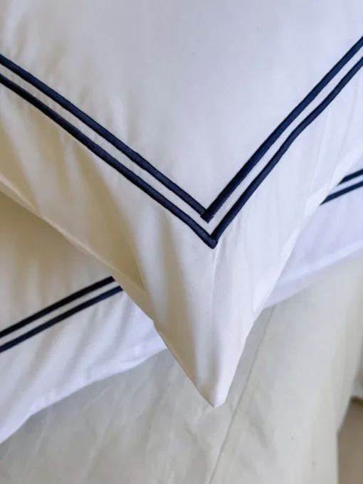 El detalle de doble festón aporta un acabado delicado y atemporal, elevando la presencia de la cama con un gesto sutil y elegante.