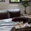 El detalle de doble festón aporta un acabado delicado y atemporal, elevando la presencia de la cama con un gesto sutil y elegante.