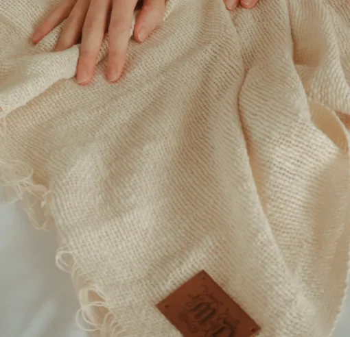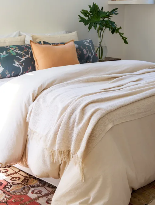 Manta de algodón tramado natural con flecos.