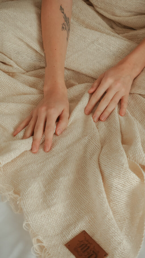 Manta de algodón tramado Natural con flecos. Medidas 1,30×2,45.