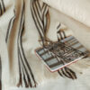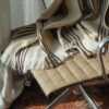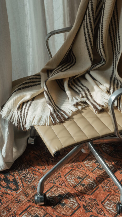 Manta de lana de oveja Crudo con Rayas Marrón, medidas 1,60×2,20.