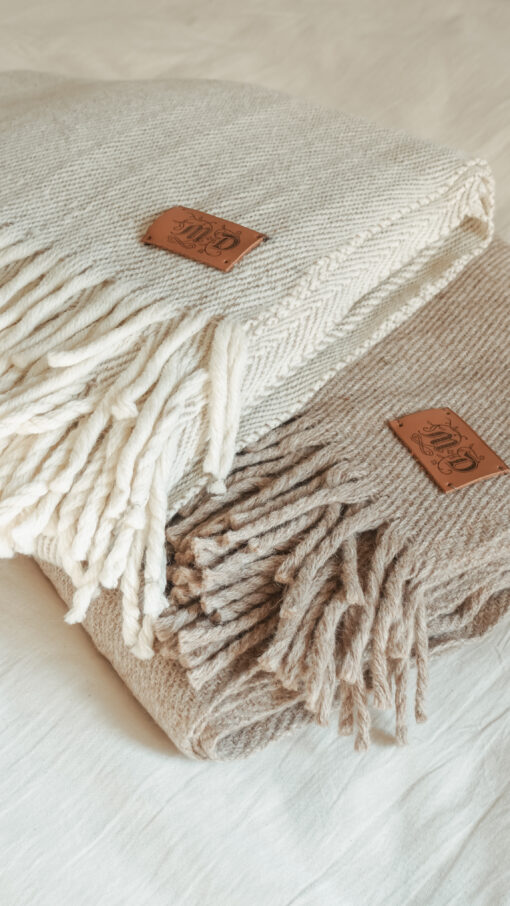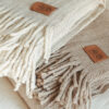 Manta de pelo de llama melange crudo y beige con flecos. Medidas 1,60×2,20
