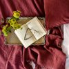 Manta panamá bordeaux rústica con flecos, teñida y confeccionada artesanalmente.