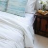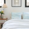 Almohadón de lienzo con tapa de adelante pintado a mano en tonos celestes y tapa de atrás lisa.