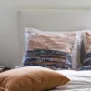 Almohadón de lienzo con tapa de adelante pintado a mano en grises y plateados y tapa de atrás lisa.