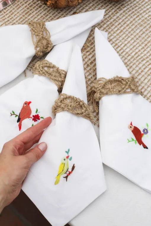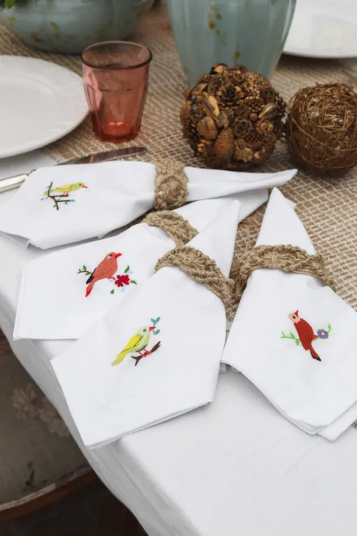 Set por 2 servilletas en percal importado blanco, con bordado a mano.