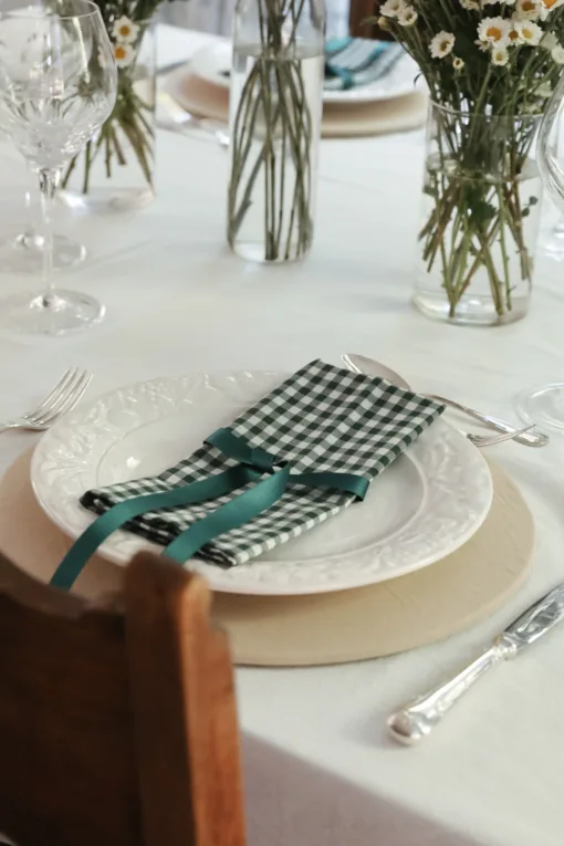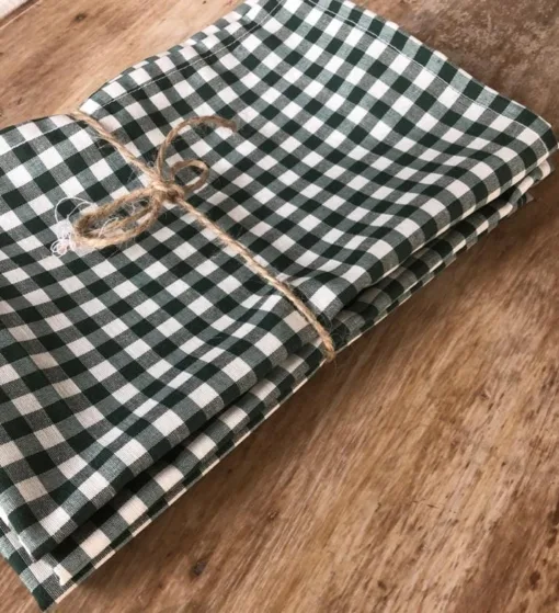 El set incluye 2 servilletas con diseño cuadrillé verde.