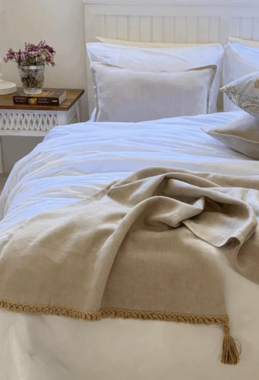 Pie de Cama de Lino Irlandes Piedra con Yute