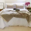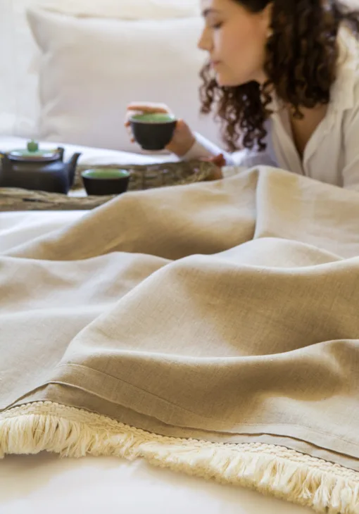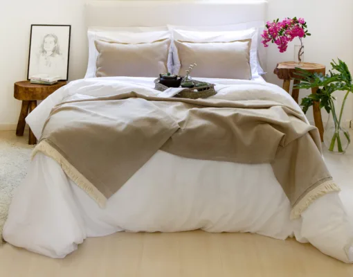 Pie de Cama de Lino Irlandés piedra, con flecos.