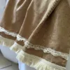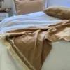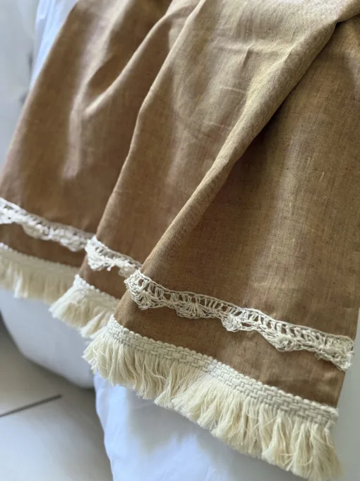 Pie de Cama de Lino tornazolado habano, con flecos.
