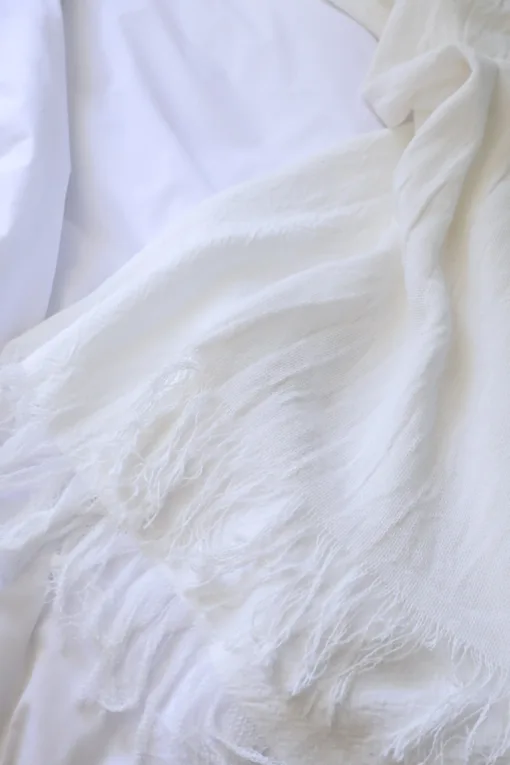 Pie de cama red blanco con flecos.
